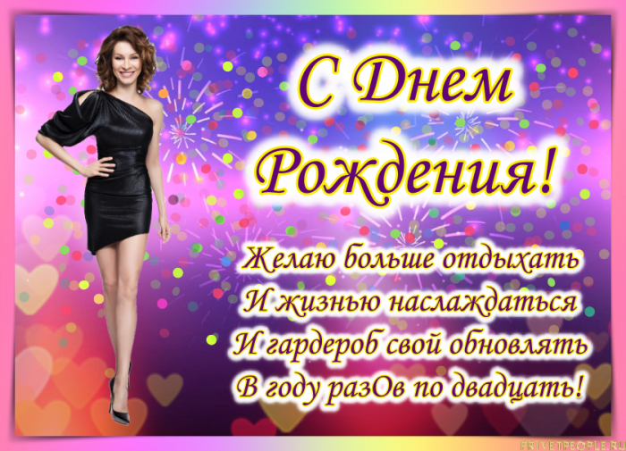 в гардеробе,И тебе пожелаю Бора-Бора. С днем рождения!Желаю тебе сегодня, дорогая именинница, чтобы самой большой и по всей